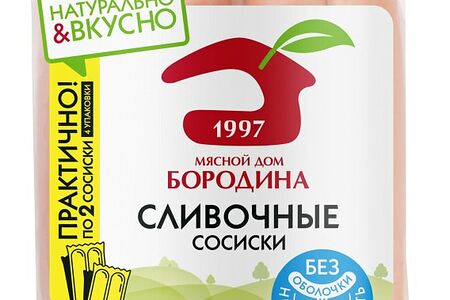 Сосиски Мясной дом Бородина Сливочные 480г отличное решение для быстрого завтрака, обеда или ужина! Это классические сосиски, изготовленные из свинины и говядины с добавлением соли, сливок и ароматных специй. Гармонично сочетаются с картофельным пюре и макаронами, хорошо подходят для приготовления аппетитных хот-догов и наваристой солянки. Вакуумная упаковка надежно сохраняет свежесть в течение всего срока годности. Мясной Дом Бородина крупное предприятие по производству мясной продукции, которое полностью отказалось от использования всех возможных заменителей мяса и усилителей вкуса. Колбасы, сосиски и деликатесы этой торговой марки отличаются высочайшим качеством и не содержат ГМО, глутамат натрия, сою и каррагинан, поэтому прекрасно подходят для всей семьи.