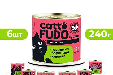 Влажный корм для кошек Cattofudo суфле Говядина с бараниной и клюквой 6*240г доставка