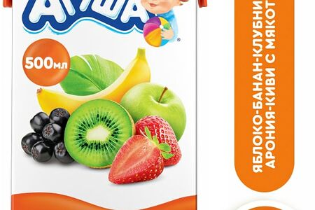 Сок Агуша Яблоко банан клубника арония и киви с мякотью 500мл доставка