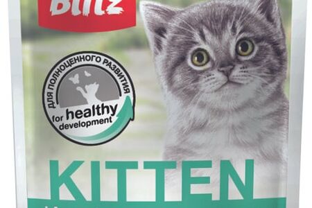 Влажный корм для котят Blitz Kitten Индейка с потрошками 85г доставка