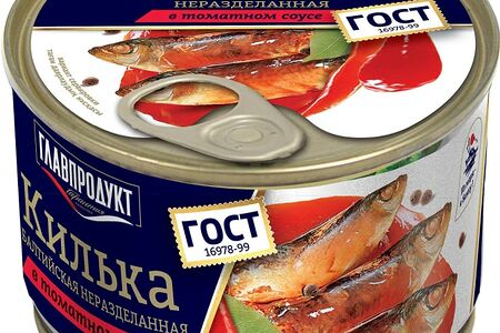 Килька Главпродукт Балтийская неразделанная в томатном соусе 240г доставка