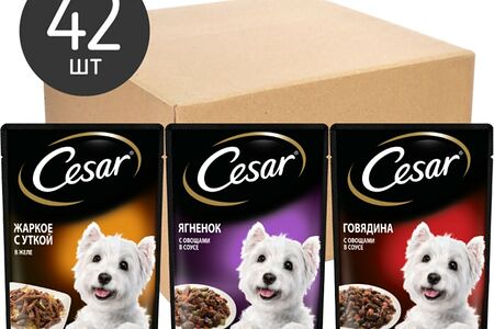 Набор влажных кормов для собак Cesar Три вкуса желе 14шт*85г и ломтики в соусе 28шт*85г доставка