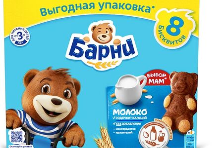 Бисквитное пирожное "Барни" с молочной начинкой — специально разработанное для детей кондитерское изделие в виде медвежонка, которое производится на основе натуральных ингредиентов: злаков и молочных продуктов. Обогащено кальцием, необходимым для здорового роста и развития детей, не содержит красителей и консервантов. Рекомендовано для детей дошкольного возраста от 3 лет. "Медвежонок Барни" — вкусный, полезный и питательный перекус, прекрасная альтернатива печенью, кексам или другой сладкой выпечке, отлично сочетается с соком, молоком, кефиром, йогуртом, чаем или какао, его удобно брать с собой в дорогу, давать ребенку в школу или на прогулку. Это отличный вариант сладкого угощения на детский праздник в детский сад, школу, на день рождения. В коробке шесть пирожных в индивидуальных упаковках. "Мишка Барни" — это выбор мам, 83% мам купили бы этот вкусный десерт для своего ребенка.
