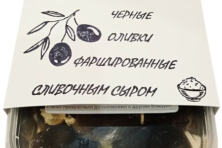 Оливки Crafting Foods Черные фаршированные сливочным сыром в масле 250г – готовая закуска, которая станет достойным украшением любого стола! Делается вручную из тщательно подобранных, натуральных ингредиентов без использования искусственных добавок и е-консервантов. Гигантские оливки калибра 70/90 предварительно маринуют в растительном масле с прованскими травами, а затем начиняют сливочным сыром. Нежный крем-сыр и пикантные черные оливки – это очень популярное сочетание, которое никого не оставит равнодушным! Вакуумная упаковка надежно сохраняет свежесть продукта в пределах всего срока годности. До и после вскрытия закуску рекомендуется хранить в холодильнике.