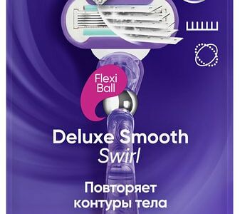 Бритва Gillette Venus Swirl с 1 сменной кассетой позволяет женщине добиться максимально чистого и комфортного бритья. Бритва выполнена в стильном женственном дизайне и имеет эргономичную ручку, которая делает процесс бритья удобным и эстетичным. Бритвенная головка оснащена 5 лезвиями, микрогребнем и смазывающей полоской. Микрокребень приподнимает волоски, лезвия начисто сбривают их, а смазывающая полоска позволяет бритве легко скользить по поверхности кожи. Применена революционная технология Flexiball , которая позволяет бритве индивидуально адаптироваться к контурам тела, запоминая все его изгибы. Сочетанием этих технологий достигается идеальный результат. Одной кассеты хватает на несколько месяцев комфортного бритья.