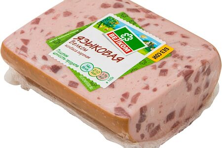 Колбаса Велком Языковая вареная 500г приготовлена из отборной свинины с добавлением мелких кусочков свиного языка, а также черного перца и мускатного ореха. Срез пятнистый, сочно-розового цвета, с фрагментами отварного языка по всей массе. Для ее производства использовалось только свежее (охлажденное или парное) мясо от лучших российских поставщиков, новейшее оборудование и проверенные рецепты. Как и вся продукция торговой марки, колбаса не содержит химических добавок, сои и ГМО. Вакуумная упаковка позволяет сохранить органолептические свойства продукта в течение всего срока годности.