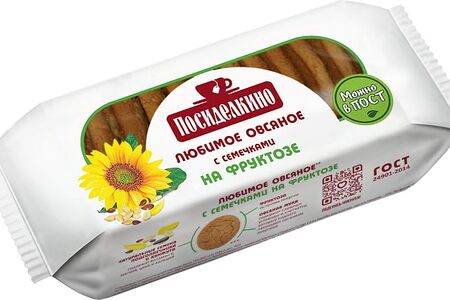Печенье Посиделкино Овсяное на фруктозе с семенами льна подсолнечника и кунжута 215г доставка