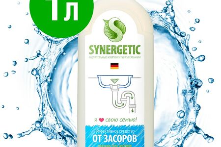 Средство для чистки труб Synergetic 1л - эффективный концентрат для устранения любых видов засоров, в том числе в стоячей воде. В составе содержится комплекс биоразлагаемых А-тензидов и кальцинированной соды. Вместе они образуют щелочную среду, в которой легко растворяются масложировые компоненты засора. Продукт быстро и безопасно устраняет неприятные запахи из канализационных труб, убивает бактерии и обладает дезинфицирующим эффектом. Можно использовать с септиком, так как оно не вредит населяющим его микроорганизмам.