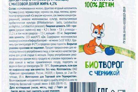Биотворог детский Зеленая линия с черникой 4.2% 100г доставка