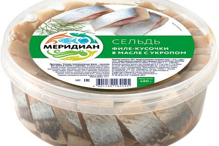 Сельдь Меридиан в масле с укропом 480г традиционная закуска, которая одинаково хорошо подходит и для обычного перекуса, и для праздничного стола! Это нежнейшие кусочки соленого филе тихоокеанской селедки, очищенные от косточек и кожи, в сочетании с растительным маслом и зеленью укропа. Продукт обладает приятным, слегка пряным вкусом и классическим селедочным ароматом с укропными нотками. Пресервы упакованы в пластиковый контейнер и полностью готовы к употреблению. Меридиан известная компания, производящая высококачественную продукцию из рыбы и морепродуктов более 40 лет. Отборное сырье, передовые технологии, специально разработанные рецептуры, опытный персонал вот что делает продукты этого бренда такими вкусными и полезными.