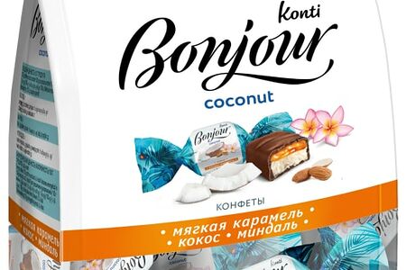Конфеты Konti Bonjour Coconut Карамель-Кокос-Миндаль 200г доставка