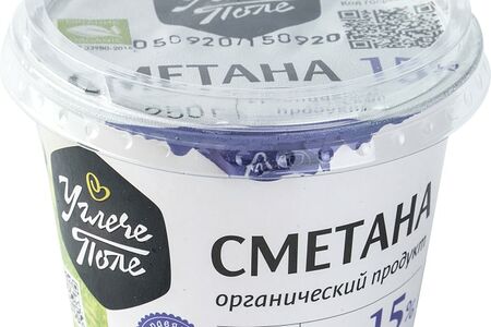 Сметана Углече Поле 15% 250г - это органический продукт, приготовленный из нормализованных сливок и специальной закваски. Углече Поле - это собственное стадо из лучших молочных пород на свободном выгуле, натуральный сбалансированный рацион, составленный из растений с собственных полей; 100% соблюдение правил органического земледелия и животноводства, а также оптимальные климатические условия. Начиная от сбора молока и заканчивая фасовкой, весь процесс роботизирован и герметичен. Все продукты сохраняют не только полезные свойства и высокую питательную ценность, но и натуральный естественный вкус. Сметана не содержит сухого молока, искусственных добавок и консервантов.