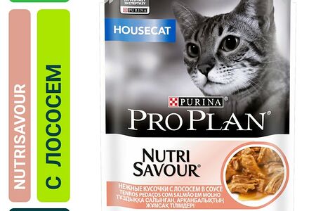 Влажный корм для кошек Pro Plan Nutri Savour Housecat кусочки в соусе с лососем 85г доставка