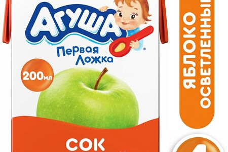 Сок Агуша Яблоко 200мл – 100% натуральный напиток, который отлично впишется в рацион детей с 4-месячного возраста. Производится из отборных спелых яблок без добавления сахара, красителей и консервантов. Является гипоаллергенным, что доказано клинически. Сок в компактной коробочке удобно брать с собой куда угодно: на прогулку, в гости, в дорогу, к врачу. В комплект входит трубочка. Современная упаковка Tetra Pak надежно сохраняет свежесть, вкус и питательную ценность напитка в пределах всего срока годности. Детское питание «Агуша» в процессе производства проходит множество лабораторных проверок, что является гарантией его безупречного качества и безопасности.