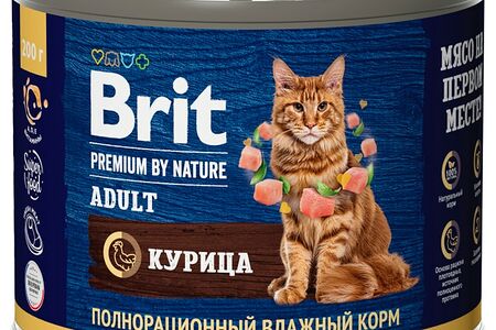 Влажный корм для кошек Brit Premium by Nature с мясом курицы 200г доставка