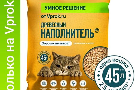 Наполнитель древесный для животных Умное решение от Vprok.ru 45л доставка