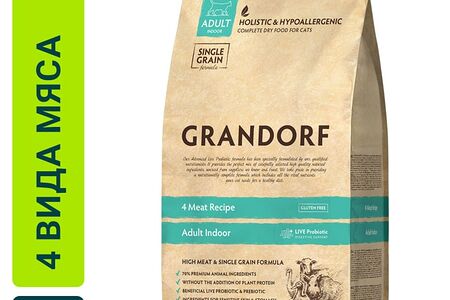 Сухой корм для кошек Grandorf Adult Indoor 4 вида мяса 2кг доставка