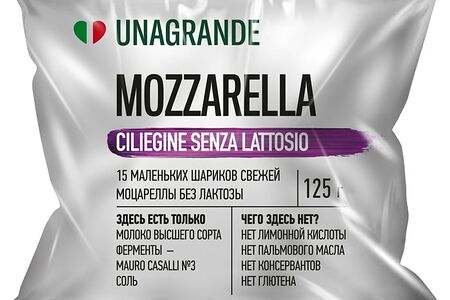 Сыр Unagrande Моцарелла Чильеджина без лактозы в воде 45% 125г доставка