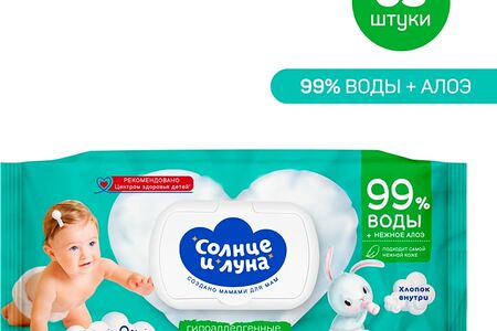 Влажные салфетки Солнце и луна для детей с экстрактом алоэ 63шт доставка
