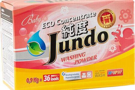 Экологичный порошок Jundo cоздан специально для детских вещей, порошок которому можно доверить уход за самым дорогим и сокровенным. Подходит для самых маленьких и новорожденных. Произведен только из натуральных компонентов, полностью выполаскивается из тканей и не пылит. Бережно и мягко отстирывает пятна, придает вещам свежесть и справляется со стиркой даже в прохладной воде. Подходит для стиральных машин любого типа или ручной стирки. Порошок можно засыпать как в отсек для порошка, так и напрямую в барабан стиральной машины. Порошок без отдушки, что особенно важно при выборе уходовых средств для детских вещей, ведь дети так чувствительны к различным ароматам. Крупные гранулы порошка не позволяют ему оседать на органах дыхания, растворяются в воде и выполаскиваются без остатка. Экологичного концентрированного порошка вам хватит на 36 стирок. Удобная картонная коробка с зиппакетом позволяют сохранить порошку свойства и не слеживаться, а мерная ложка поможет отмерить необходимое количество средства.