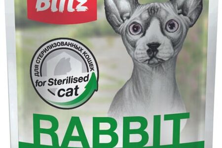 Влажный корм для кошек Blitz Sensitive Sterilised cat для стерилизованных Кролик с индейкой 85г доставка