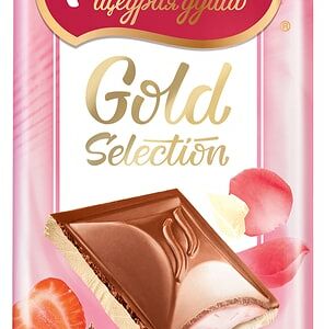 Шоколад Россия - щедрая душа Gold selection молочный и белый клубника роза 82г доставка