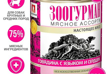 Влажный корм для собак Зоогурман Мясное ассорти Говядина с языком и сердцем 750г доставка