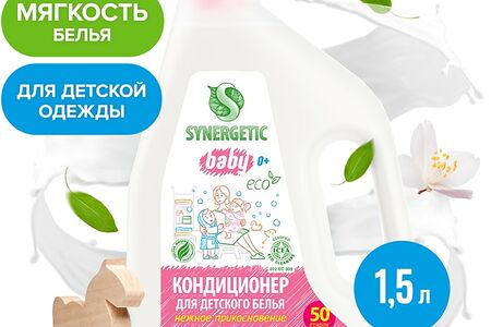 Кондиционер-ополаскиватель для белья Synergetic Нежное прикосновение детский без отдушек 50 стирок 1.5л доставка