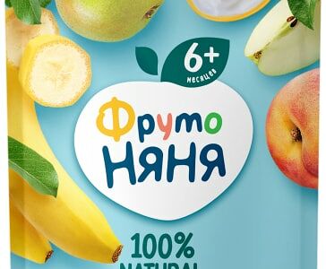 Пюре ФрутоНяня Яблоко Груша Банан Персик с йогуртом 90г 100% натуральное лакомство, предназначенное для расширения рациона детей с 6 месяцев. Изготовлено на основе яблочного, грушевого, бананового и персикового пюре с добавлением нежного йогурта. Спелые сочные фрукты обогащают растущий организм витаминами, а йогурт способствует улучшению пищеварения и служит источником кальция. В составе нет сахара, крахмала, искусственных ароматизаторов, красителей, консервантов, ГМО. Продукт полностью готов к употреблению. Для перекуса вашему малышу не потребуется ложечка, ведь пюре можно кушать прямо из упаковки. Удобно брать с собой на прогулку, в гости, в дорогу. Разноцветные крышечки скрепляются между собой, превращаясь в увлекательный конструктор!