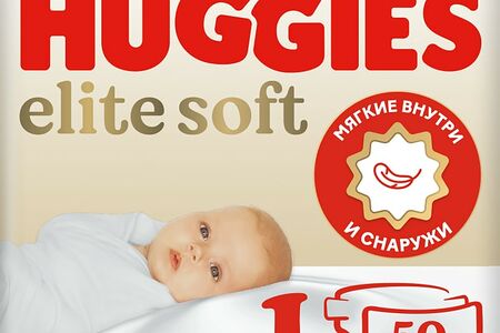 Подгузники Huggies Elite Soft для новорожденных 3-5кг 1 размер 50шт доставка