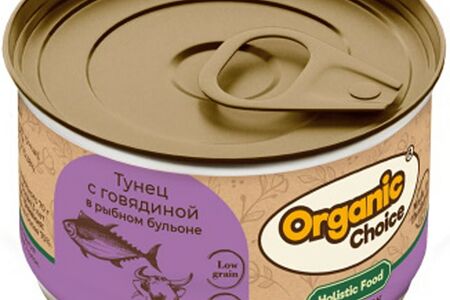 Влажный корм для кошек Organic Сhoice Low Grain тунец с говядиной в рыбном бульоне 70г доставка