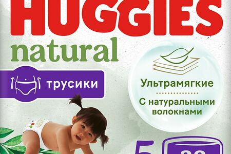 Подгузники трусики Huggies Natural 12-17кг 5 размер 38шт доставка