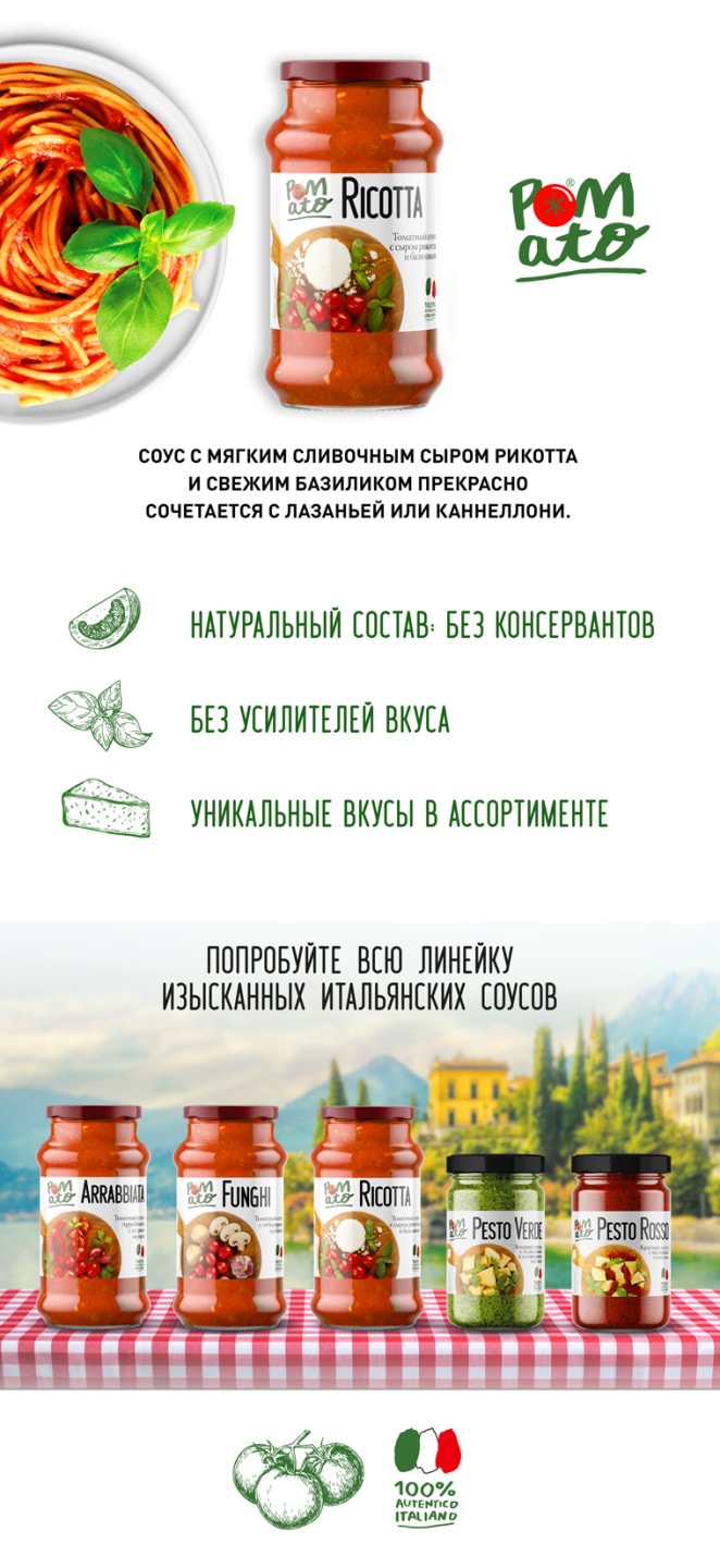 Соус Pomato томатный с сыром риккота и базиликом 350г доставка