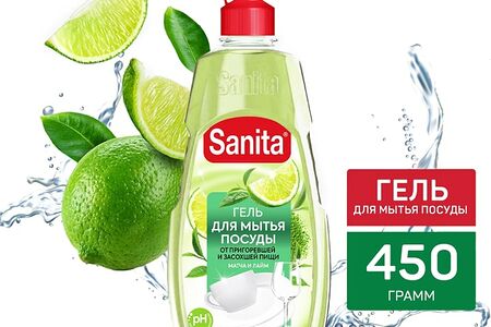 Средство для мытья посуды Sanita Матча + Лайм 450г доставка