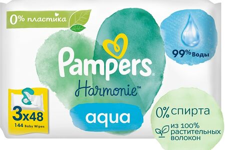 Салфетки влажные детские Pampers Harmonie Aqua 144шт доставка