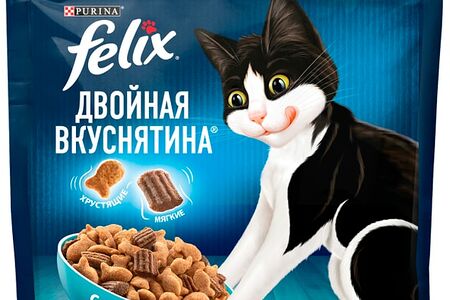 Любопытство вашего кота заложено природой! И бренд Felix снова придумал, как его удовлетворить. Представляем Felix "Двойная Вкуснятина" — сухой корм для кошек, который полностью соответствует потребностям вашего озорника. Восхитительное сочетание двух текстур в одной упаковке: хрустящие гранулы смешаны с мягкими кусочками для создания невероятного вкуса, перед которым невозможно устоять! Широкий ассортимент позволит коту наслаждаться разнообразием мясных или рыбных вкусов с соблазнительными ароматами. Felix "Двойная Вкуснятина" — первый сухой корм, созданный под брендом Felix для находчивого кота, который знает толк во вкусной еде. Не содержит искусственных красителей и консервантов. Сочетание хрустящих гранул с мягкими и нежными кусочками. 100% сбалансированный полный рацион. Содержит витамины А, D, Е и таурин. Совет от Felix: вы пробовали комбинировать сухой и влажный корм в ежедневном рационе вашего кота? Попробуйте! Ведь теперь Felix доступен в обоих рационах.