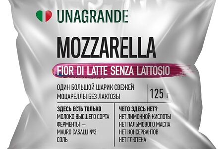 Сыр Unagrande Моцарелла Фиор Ди Латте без лактозы в воде 45% 125г доставка