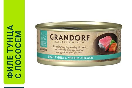 Влажный корм для кошек Grandorf Филе тунца с мясом лосося 70г доставка