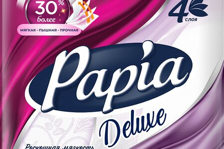Бумага туалетная Papia Deluxe белая, 4 слоя, 4 рулона. Туалетная бумага Papia Deluxe четырехслойная белая с тиснением и перфорацией. Уникальная итальянская технология изысканного кружевного тиснения Pixel, разработанного специально для Papia, делает бумагу не только более эстетически привлекательной, но и более приятной на ощупь. Двустороннее тиснение бумаги обеспечивает лучшую впитываемость и мягкость с обеих сторон. Обновленная Papia — выбор тех, кто всегда стремится к большему. Благодаря новой инновационной технологии Termo Power Tech теперь еще более мягкая, пышная и прочная.