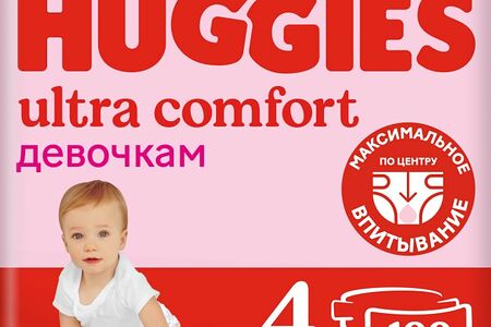 Подгузники Huggies Ultra Comfort для девочек 8-14кг 4 размер 100шт доставка