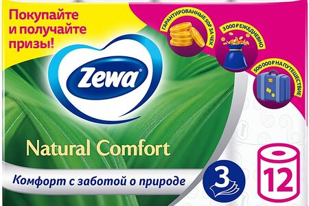 Туалетная Бумага Zewa Natural Comfort 12 рулонов 3 слоя в ассортименте доставка