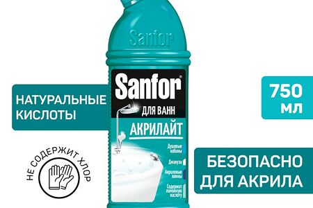 Средство чистящее Sanfor Акрилайт для ванн 750мл доставка