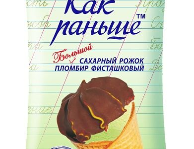Мороженое Как раньше Пломбир Фисташковый в сахарном рожке 12% 100г доставка