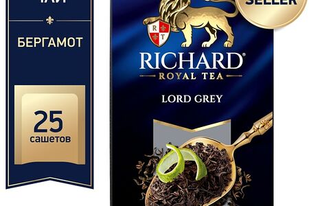 Чай черный Richard Lord Grey 25 пакетиков из коллекции Королевской классики - это безупречный купаж, который украсит праздничное чаепитие и покорит своим вкусом даже самых взыскательных гостей. Он создан по рецептам королевского двора из элитных сортов байхового черного чая, выращенного на высокогорных плантациях Цейлона. Напиток получается истинно аристократическим, с пикантным ароматом бергамота и цитрусовой цедры. Саше из специальной фольги, в которое упакован каждый пакетик, гарантирует свежесть чая и сохранение его органолептических свойств.