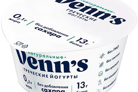 Йогурт Venns Греческий обезжиренный 0.1% 130г производится по уникальной технологии без добавления усилителей вкуса, искусственных красителей и консервантов. В его составе нет ничего лишнего: только свежее обезжиренное молоко, закваска и пробиотики. Густой сливочный йогурт без добавок прекрасное решение для легкого завтрака или перекуса в течение дня. Он отличается повышенным содержанием белка главного строительного материала всего человеческого организма. Идеально подходит для всех, кто следит за фигурой или предпочитает здоровое питание. Можно использовать для приготовления полезных соусов и заправок. Упаковка пластиковый стаканчик с крышечкой из фольги. На каждом этапе производства все продукты марки Venns проходят строжайший контроль качества.
