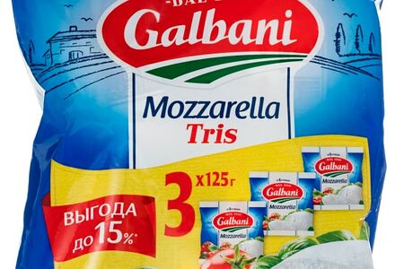 Сыр Galbani Моцарелла Трио 45% 3шт*125г 3 шарика нежного сливочного сыра в одной упаковке! Моцарелла это легендарный итальянский сыр, который завоевал популярность во всем мире. Обладает мягкой, но упругой текстурой и довольно пресным, но очень приятным вкусом. Это 100% натуральный продукт без ГМО, красителей, ароматизаторов. Крупные шарики превосходно подходят для приготовления салата Капрезе. Нарежьте свежие томаты кружочками, выложите их на тарелку по кругу, а сверху накройте ломтиками моцареллы. Добавьте соль и перец, полейте смесью оливкового масла и бальзамического уксуса, а напоследок украсьте блюдо листиками базилика. Это очень просто, но невероятно вкусно!