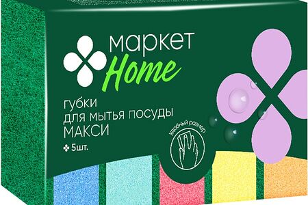 Губки для мытья посуды Маркет Home Макси 5шт в ассортименте доставка