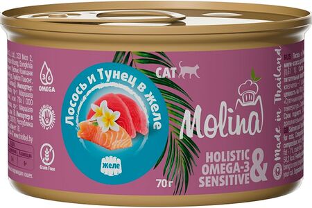 Влажный корм для кошек Molina Лосось и тунец в желе 70г доставка