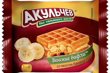 Вафли Акульчев Венские со вкусом Банана 50г доставка
