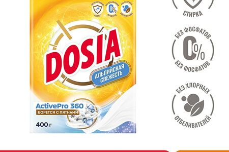 Порошок для стирки Dosia Optima "Альпийская Свежесть" 400 г. Подходит для стирки всех типов тканей. Отлично справится с различными загрязнениями и придаст белью неповторимую свежесть!